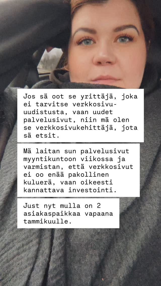 "Siis WAU! On todella hienot ja tyylikkäät - ihan mun näköiset sivut!! Upeeta työtä, Bea! 😍 Oon kyllä tosi tyytyväinen!"